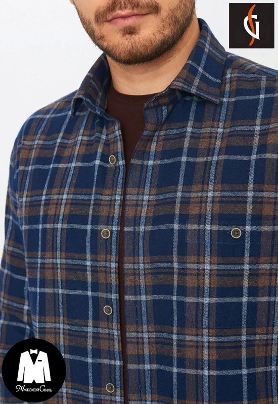 Рубашка клетка фланель синяя